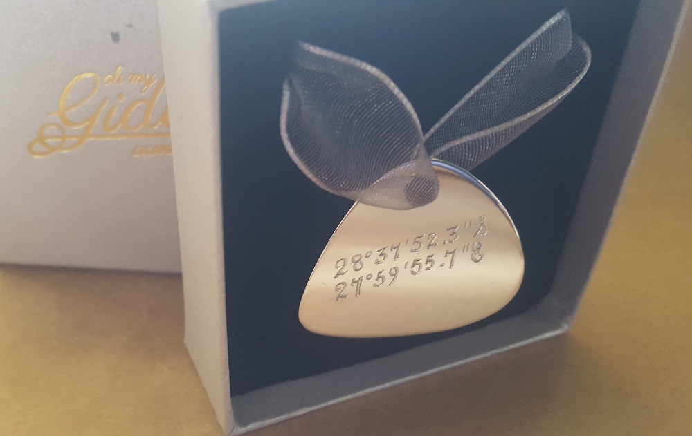 A picture may be worth a thousand words, but just a few words can paint a pretty good picture too! You can have any Oh My Giddy Aunt keepsakes or gifts hand-engraved with a place name, verse, location co-ordinates, postcode or letters and numbers to tell your Down Under story.
