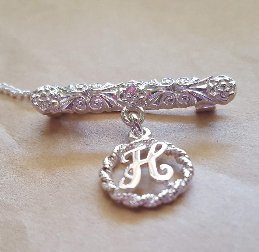 All brooches can be hand-engraved but different metals will have slightly different results. Engraving solid sterling silver or 9ct gold means the name will appear in the same metal as the brooch as the brooch is the same metal all the way through.